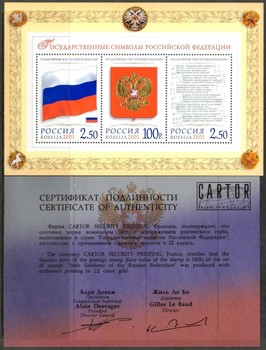 National emblems of the Russian Federation Souvenir sheet + certific.