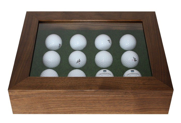 Pähkinäpuusta tehdyssä vitriinissä voit säilyttää golfpalloja, joista sinulla on erityisiä ja hienoja muistoja.